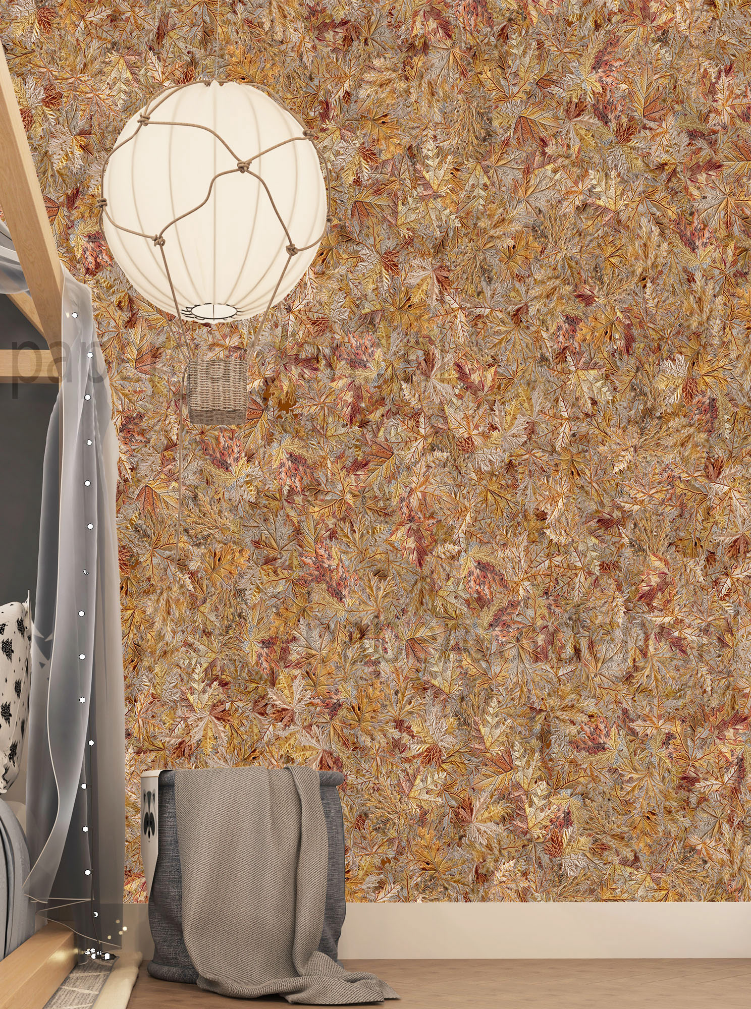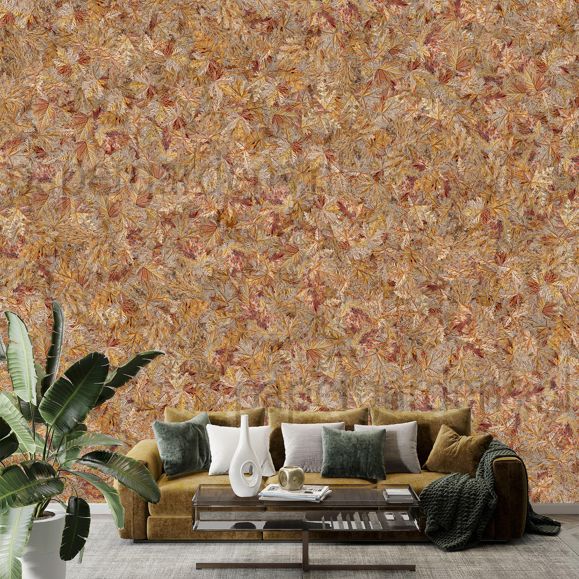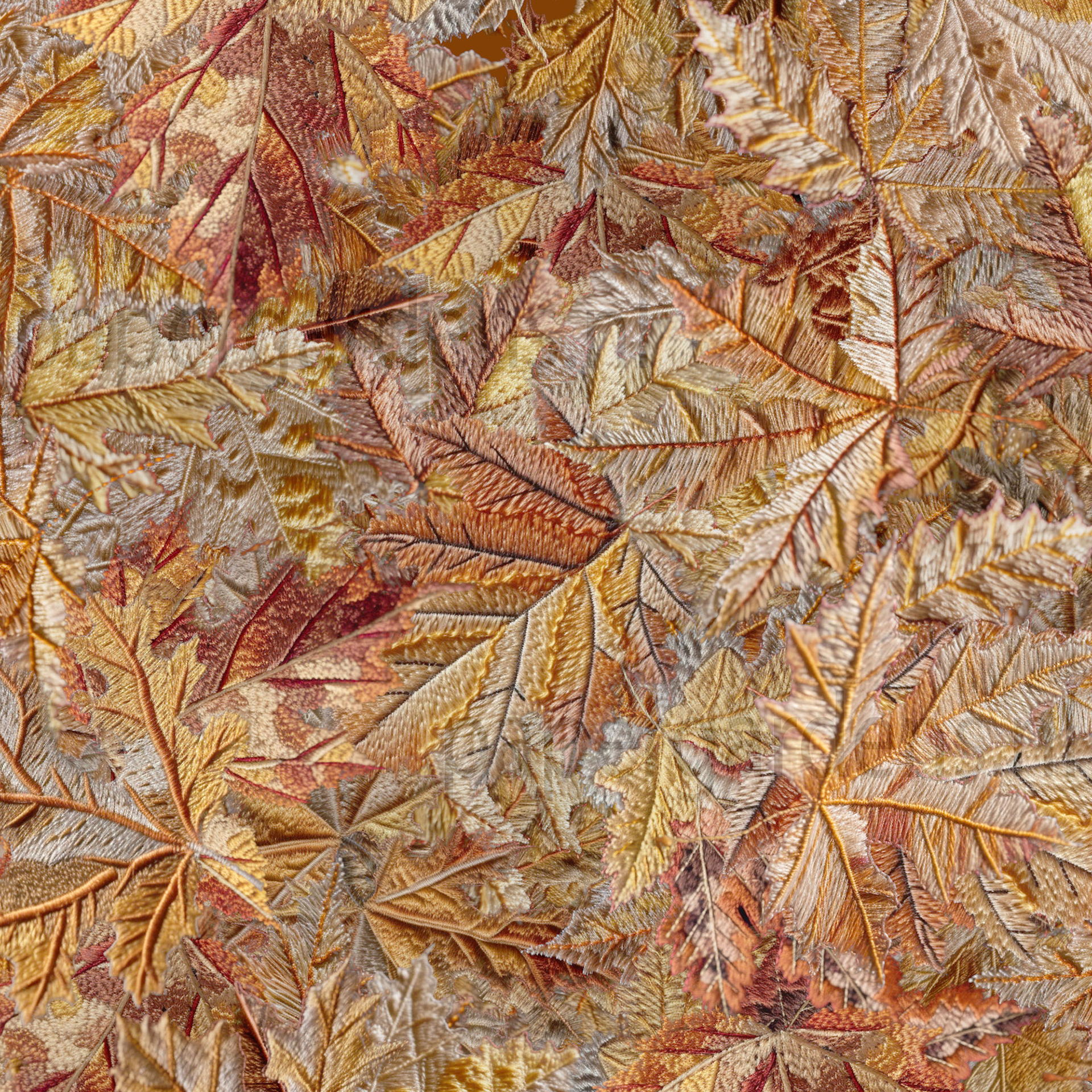 embroidery autumn leaves yellow brown taupe