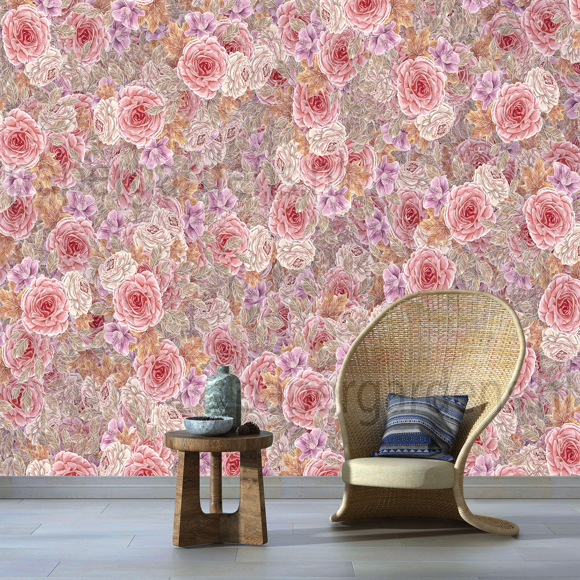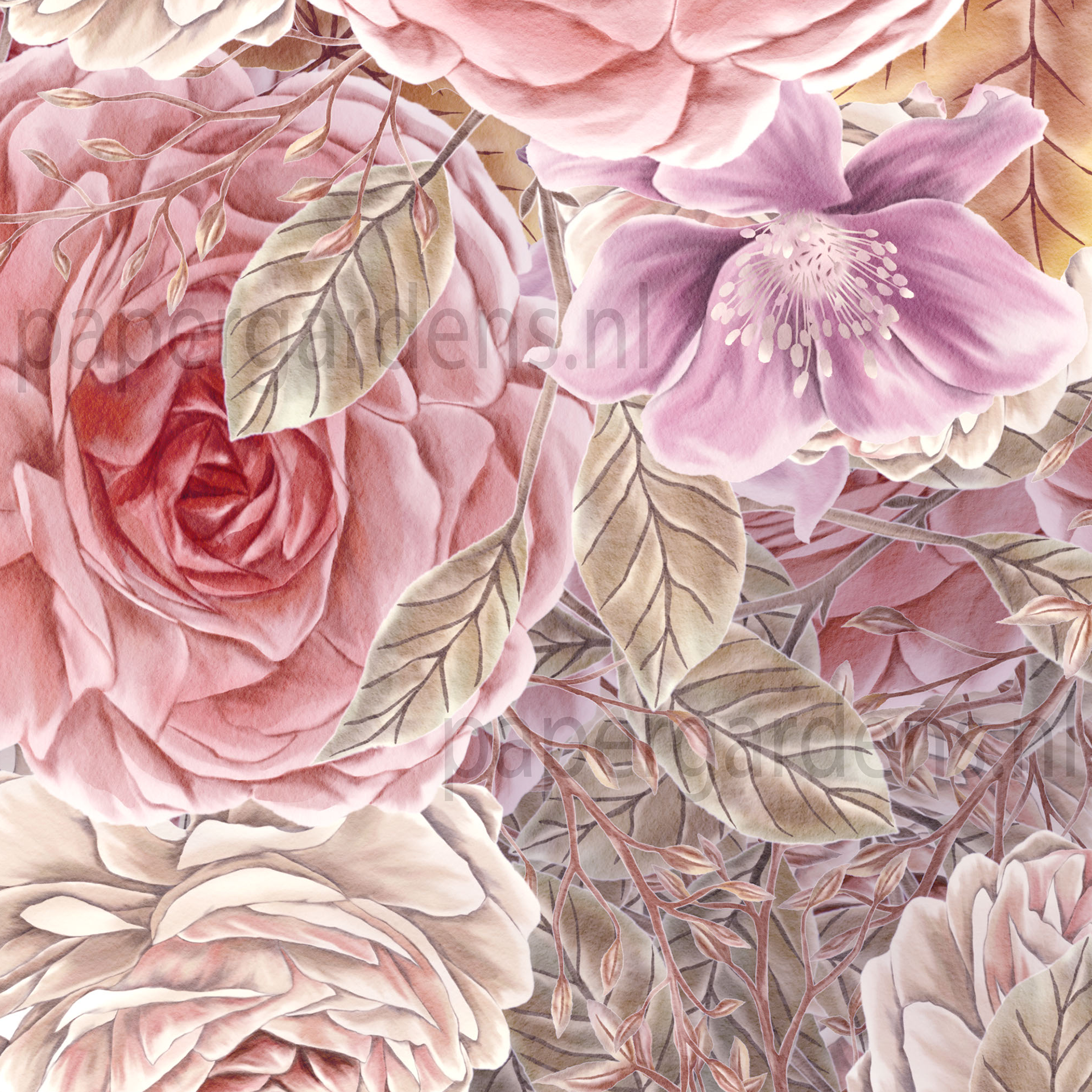 watercolor tea roses party pink orange lila taupe